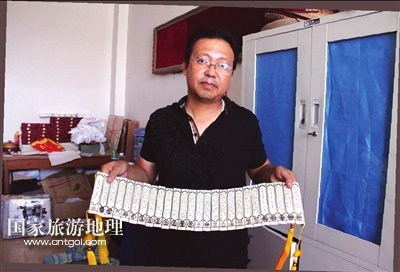 說起他們引以為傲的骨雕作品時(shí),哈斯達(dá)來老師告訴記者,那就是經(jīng)過40多人花費(fèi)4個(gè)多月時(shí)間純手工雕刻,于2008年8月完成的《蒙古秘史》。為了完成這件藝術(shù)作品,他們從3000多頭牛中挑選出6000塊牛大骨(每頭牛只有2塊牛大骨),再從中選出同樣尺寸的4000多塊牛大骨,然后經(jīng)過消毒、打磨,選用了其中的1400塊進(jìn)行雕刻。骨雕作品《蒙古秘史》共12章282節(jié),長(zhǎng)32米,寬15厘米,現(xiàn)陳列于內(nèi)蒙古師范大學(xué)文學(xué)館內(nèi),正在申報(bào)吉尼斯世界紀(jì)錄。哈斯達(dá)來老師希望通過此種形式,進(jìn)一步展現(xiàn)骨雕藝術(shù)的魅力。有了經(jīng)驗(yàn)以后,2009年8月,他們又完成了《蒙古秘史》的第二次雕刻,這次的作品長(zhǎng)29米,寬12.4厘米,骨頭厚度0.3厘米,現(xiàn)陳列于該校的展覽館內(nèi)。