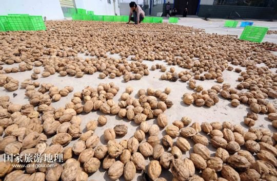 國家旅游地理 青海海東9月18日訊 青海省循化撒拉族自治縣積石鎮(zhèn)的農(nóng)民在晾曬薄皮核桃(9月17日攝)。金秋時節(jié),在青海省循化撒拉族自治縣核桃種植區(qū),果肉豐滿的薄皮核桃開始上市。近年來,循化縣利用黃河上游的氣候和土壤特點(diǎn),發(fā)展薄皮核桃特色產(chǎn)業(yè)。目前,循化縣核桃種植面積超過3萬畝,小小核桃成為當(dāng)?shù)剞r(nóng)民致富的重要渠道。 /新華社記者 侯德強(qiáng) 攝