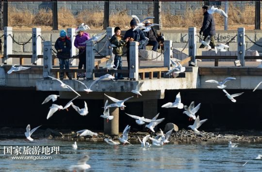 國家旅游地理 河北秦皇島1月13日訊 1月12日,一群海鷗在秦皇島市海港區(qū)新開河入??谔幰捠?。隨著氣溫不斷下降,在秦皇島沿海一線越冬的海鷗開始飛到市區(qū)內(nèi)的河道覓食,為冬日里的秦皇島市區(qū)增添了生機。 /新華社記者楊世堯攝