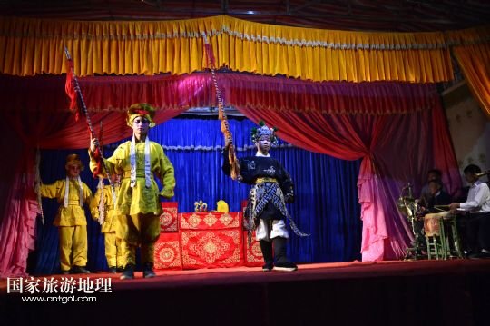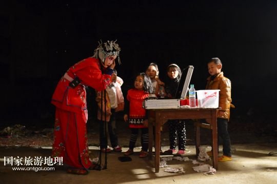 國家旅游地理 江西九江4月2日訊 在溪口鎮(zhèn)小溪村,三元班在演出寧河戲《三請樊梨花》(3月26日攝)。寧河戲是江西地方大型古老劇種之一,發(fā)源于江西修水縣,流行于贛北及湘、鄂、贛交界一帶。在寧河戲鼎盛的清乾隆年間,曾出現(xiàn)過“寧州十八班”,從業(yè)人員達(dá)到六七百人。然而隨著時(shí)代的變遷,寧河戲逐步?jīng)]落,最大的危機(jī)是逐漸空心化的村莊和村莊里越來越少的老戲迷。