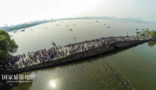 國(guó)家旅游地理 浙江杭州5月1日訊 5月1日,杭州西湖景區(qū)里的游客熙熙攘攘。當(dāng)日是五一小長(zhǎng)假的第一天,杭州西湖景區(qū)從上午開(kāi)始就進(jìn)入了游客“高峰模式”。根據(jù)杭州旅游委員會(huì)的數(shù)據(jù),2013年五一小長(zhǎng)假期間,杭州西湖景區(qū)累計(jì)接待游客168.48萬(wàn)人次,今年很有可能會(huì)突破這個(gè)數(shù)字。 /新華社記者 徐昱 攝