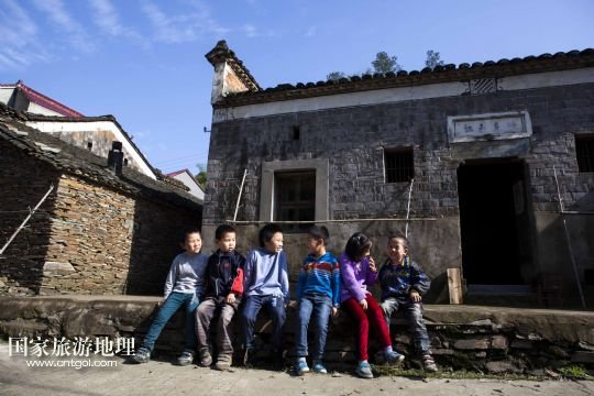 國(guó)家旅游地理 江西九江5月12日訊 5月12日,孩子們坐在土目源村的老房子前玩耍??沼牡纳焦龋幌⒌南?,斑駁的石墻,古樸的石屋。在江西省北部山區(qū),有一座石屋山居的古村落——都昌縣大港鎮(zhèn)土目源村。