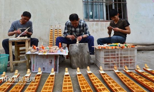 國(guó)家旅游地理 湖北宜昌5月15人訊 5月15日,手工藝人鄭祥龍?jiān)跒槲⑿妄堉凵淆堫^。端午節(jié)臨近,屈原故里湖北省秭歸縣歸州鎮(zhèn)手工藝人鄭祥龍精心制作一條條微型木制龍舟,準(zhǔn)備在端午文化節(jié)期間向中外游客進(jìn)行展示。