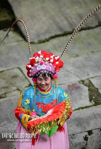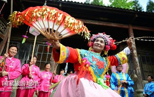 國(guó)家旅游地理 湖北恩施5月28日訊 5月27日,湖北省利川市柏楊壩鎮(zhèn)柏壩楊村的民間藝人陳文菊在表演利川燈歌的代表作《龍船調(diào)》。利川燈歌起源于湖北省恩施土家族苗族自治州利川市柏楊壩鎮(zhèn)一帶,距今約300多年歷史,2011年入選第三批國(guó)家級(jí)非物質(zhì)文化遺產(chǎn)名錄。有記載稱,從清朝開(kāi)始,當(dāng)?shù)厝罕姺昴赀^(guò)節(jié)、喜慶集會(huì)、玩彩龍船時(shí)都要唱燈歌。如今,在柏楊壩鎮(zhèn),有一些熱愛(ài)民族文化的老藝人,用心口相傳的形式傳唱利川燈歌,釋放土家人豁達(dá)、幽默的人生情懷。利川燈歌具有很高的民族文化藝術(shù)價(jià)值,《龍船調(diào)》《篩子關(guān)門(mén)眼睛多》《打把扇子送情》等一批燈歌旋律優(yōu)美、歌詞詼諧生動(dòng),深受人們喜愛(ài)。新華社發(fā)(楊順丕 攝)