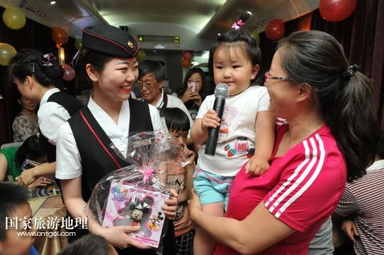 國家旅游地理 寧夏銀川6月1日訊 5月31日晚上,蘭州鐵路局銀川客運段寧夏號列車上的一線乘務(wù)人員為乘坐列車的孩子們舉辦了一場“歡慶六一”迷你晚會,通過才藝展示和贈送小禮品,讓旅途中的孩子們感受到溫暖和歡樂。新華社記者 彭昭之 攝