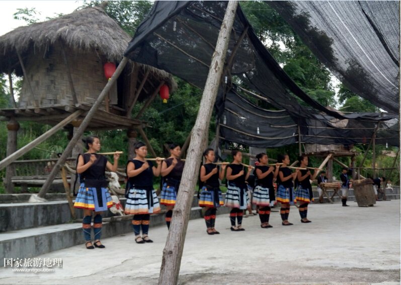 這是黔南荔波縣瑤寨姑娘在表演舞蹈。荔波瑤山白褲瑤是一個(gè)歷史悠久的古老民族,是一支長(zhǎng)期深居高山密林,過(guò)著刀耕火種,自給自足的封閉式狩獵民族,至今仍保存著母系氏族社會(huì)向父系氏族社會(huì)過(guò)渡的遠(yuǎn)古遺風(fēng),因其民族文化保存最完整而被聯(lián)合國(guó)科教文衛(wèi)組織賜予“人類(lèi)文明的活化石”之稱(chēng)。又因其崇拜太陽(yáng)神,信奉百神靈,圖騰與遠(yuǎn)在大洋彼岸的印第安人極為相似而被外界稱(chēng)為“東方印第安人”。