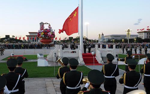 摘要:10月1日,天安門廣場舉行升國旗儀式。當日清晨,來自全國各地的各族群眾在北京天安門廣場觀看升國旗儀式,慶祝中華人民共和國成立66周年。